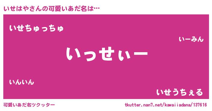 | ヒーロー風カッコイイあだ名 | 『炎刃騎士イセ』『慈愛の使者いせはや』 |