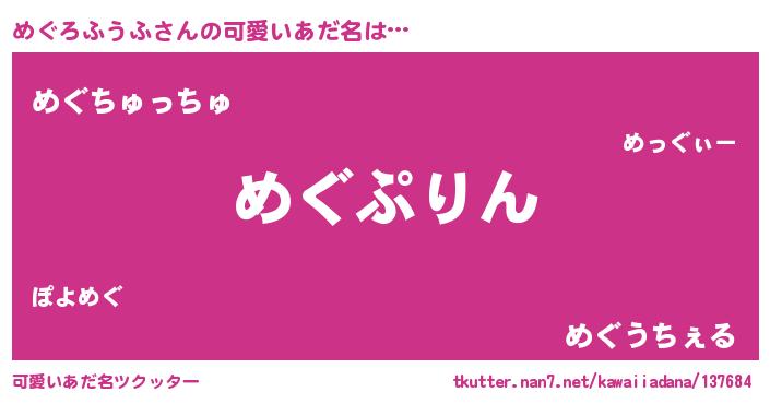 | ヘコむあだ名 | 『めぐぷりん』『めぐにゅー』 |