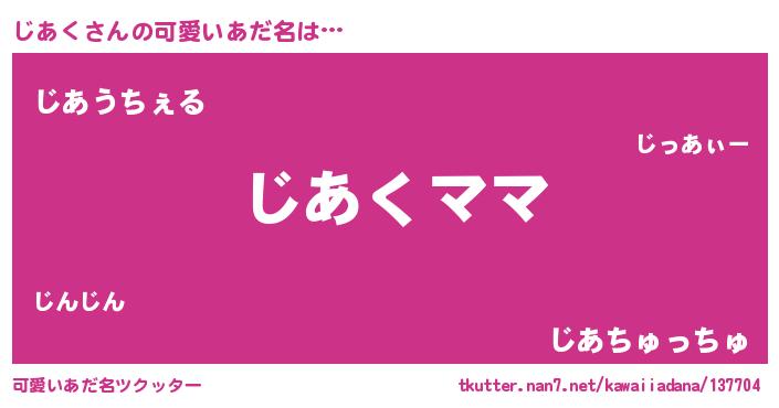 | 意味不明あだ名 | 『永久保存じあく』『自称じあく』 |