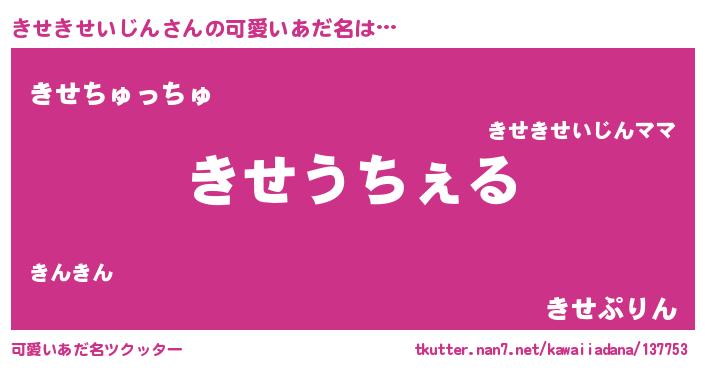 | 恥ずかしいあだ名 | 『キセキセイジンデラックス』『きせちん』 |