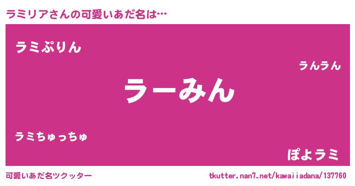 | 恥ずかしいあだ名 | 『プリティーラミリア』『ラミリンリン』 |