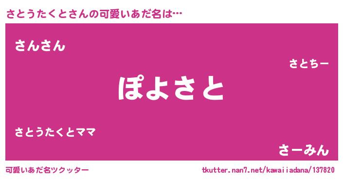| 意味不明あだ名 | 『住所不定無職さとうたくと(3歳)』 |