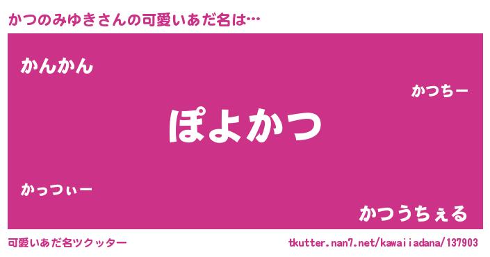 | 恥ずかしいあだ名 | 『プリティーかつのみゆき』『かつっちょ』 |