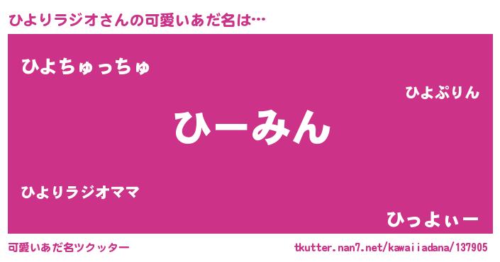 | ヘコむあだ名 | 『ひよを』『ひよりラジオ(苦笑)』 |