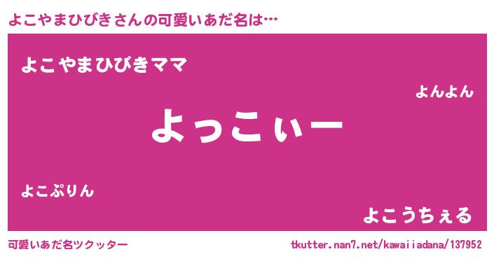 | ポケモン風あだ名 | 『ヒヨコヤマヒビキ』『ヨコゴンZ』 |