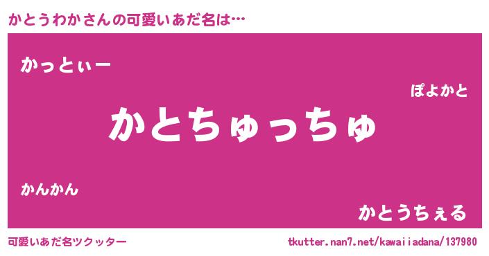 | ヒーロー風カッコイイあだ名 | 『慈愛の使者かとうわか』『銀牙騎士カト』 |