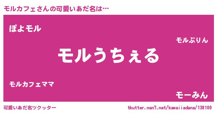 | 男性向けラノベタイトル風あだ名 | 『Re:モルカフェから始める異世界生活』 |