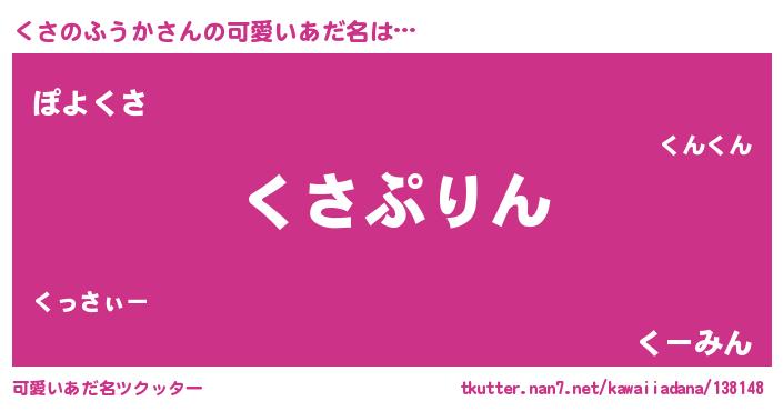 | 恥ずかしいあだ名 | 『プリティーくさのふうか』『くさっちょ』 |