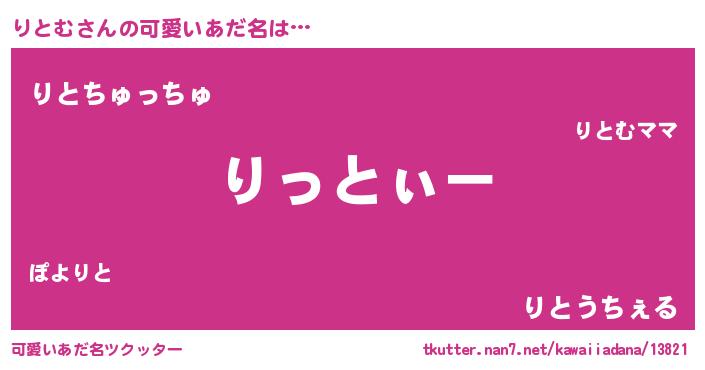 | 男性向けラノベタイトル風あだ名 | 『りとむの嫁は女の子じゃないと思った?』 |