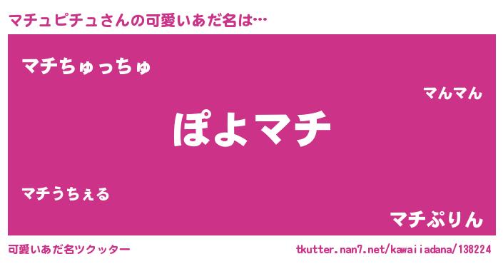 | 女子向けラノベタイトル風あだ名 | 『マチュピチュが死なない童話 林檎のマチュピチュの診療簿』 |