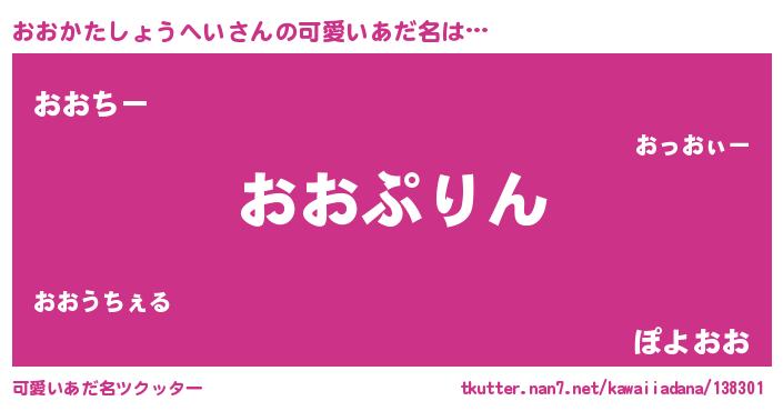 | 男性向けラノベタイトル風あだ名 | 『おおかたしょうへい~年齢イコール彼女いない歴の魔法使い~』 |