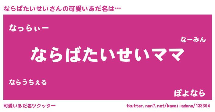 | ヘコむあだ名 | 『ならばたいせい(爆)』『ならっちょ』 |