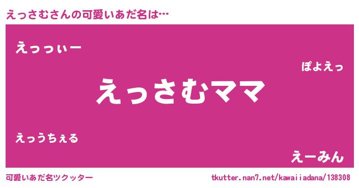 | ヘコむあだ名 | 『えっさむ(苦笑)』『えっお』『豆乳』 |
