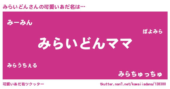 | 意味不明あだ名 | 『永久保存みらいどん』『自称みらいどん』 |