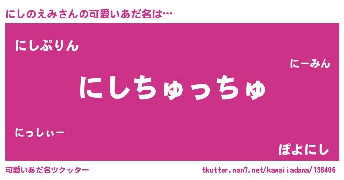 | ヘコむあだ名 | 『にしっぺ』『豆乳』『にしっふぃ~』 |