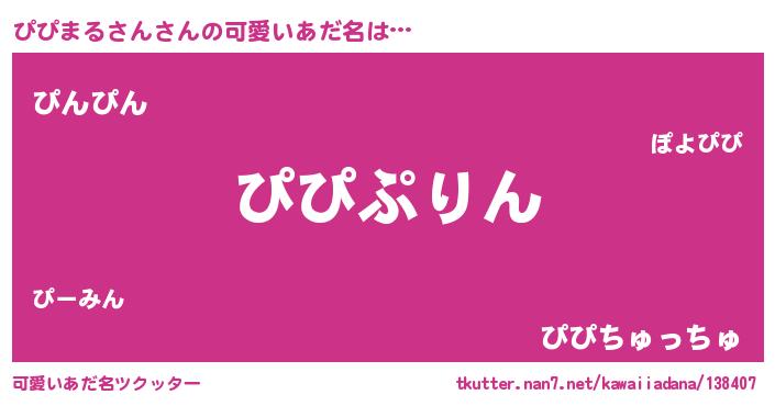| 男性向けラノベタイトル風あだ名 | 『ぴぴまるさん~年齢イコール彼女いない歴の魔法使い~』 |