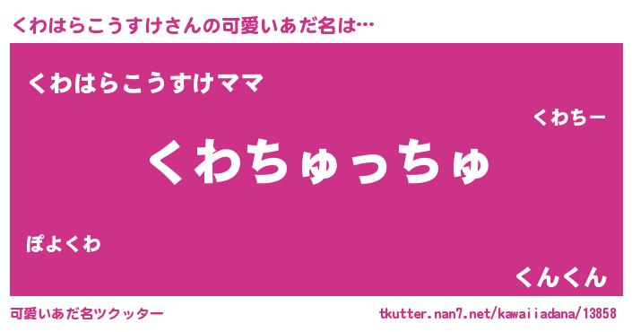 | ヘコむあだ名 | 『くわはらこうすけ(遠い目)』『くわふぇ~』 |