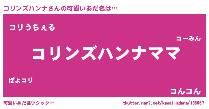 | 意味不明あだ名 | 『永久保存コリンズハンナ』 |