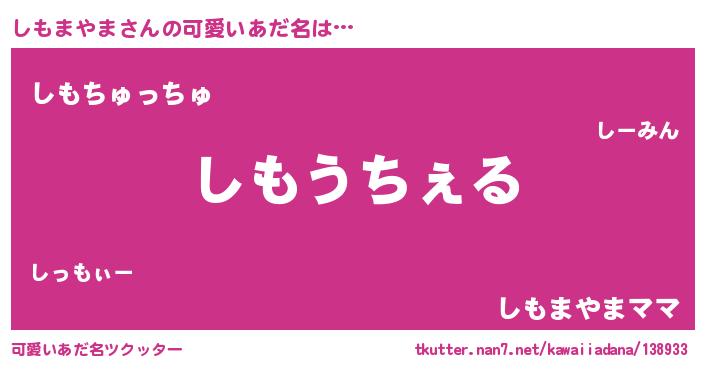 | 男性向けラノベタイトル風あだ名 | 『Re:しもまやまから始める異世界生活』 |
