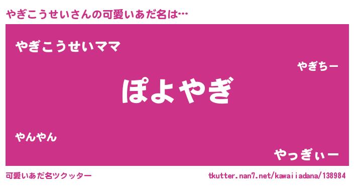 | ヘコむあだ名 | 『やぎこうせい(笑)』『やぎっぺ』 |