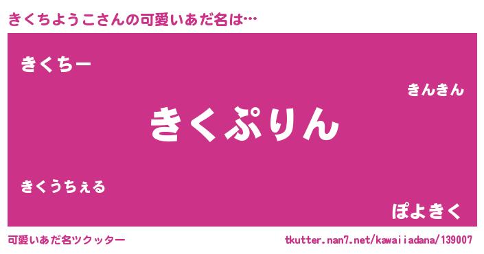 | 意味不明あだ名 | 『めかぶ科きくちようこ属』 |