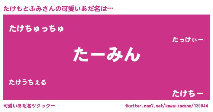 | ヘコむあだ名 | 『なまこ酢』『たけ太郎』『たけもー』 |