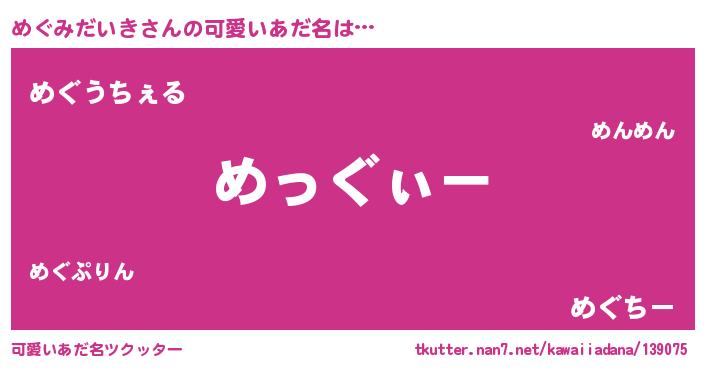 | ポケモン風あだ名 | 『ヒメグミダイキ』『メグゴンZ』 |