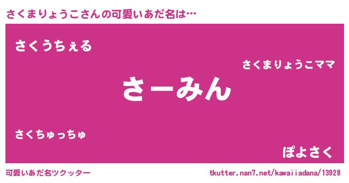 | 恥ずかしいあだ名 | 『サクマリョウコデラックス』『さくちん』 |