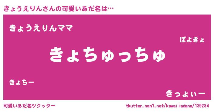 | ヒーロー風カッコイイあだ名 | 『愛の使者きょうえりん』『天弓騎士キョ』 |