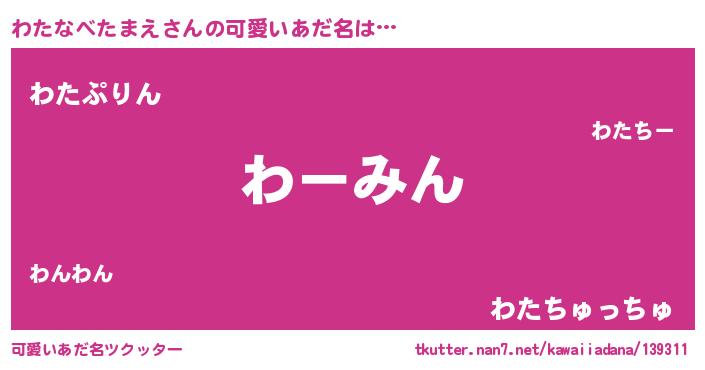 | 欧米人風あだ名 | 『アンジェラ・わたなべたまえ』 |
