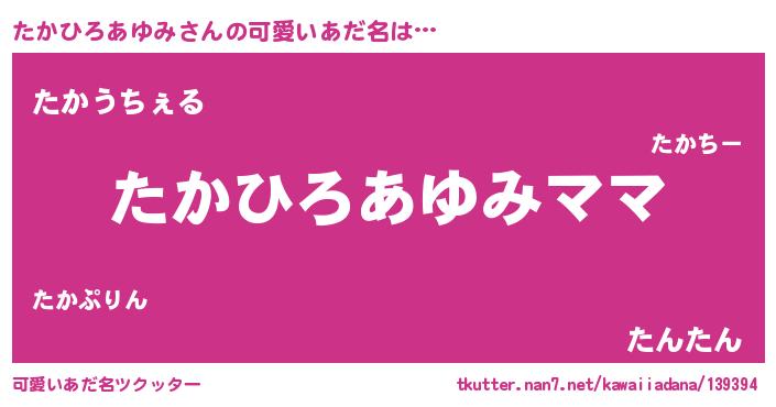 | ヘコむあだ名 | 『たかひろあゆみ(笑)』『たかもー』 |
