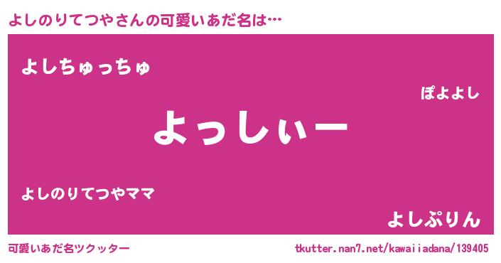 | ヘコむあだ名 | 『よしっちょ』『よしのりてつや(爆)』 |