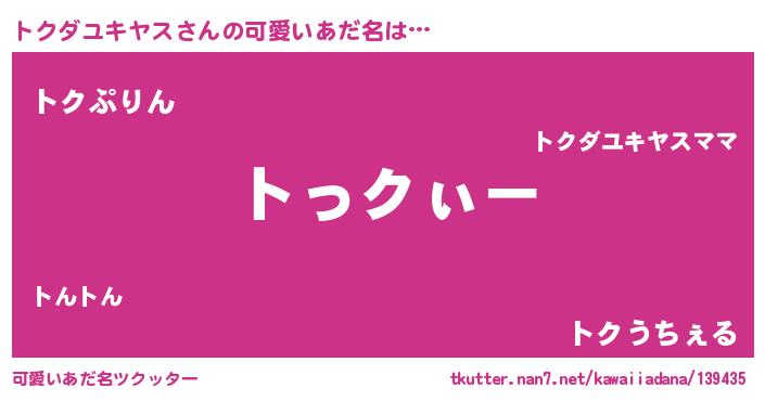 | ポケモン風あだ名 | 『ヒトクダユキヤス』『トクキング』 |