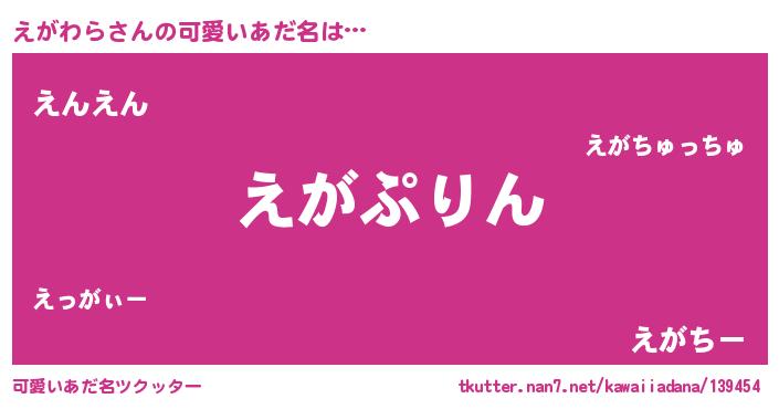 | ヘコむあだ名 | 『えがにゅー』『酢こんぶ』『えがを』 |