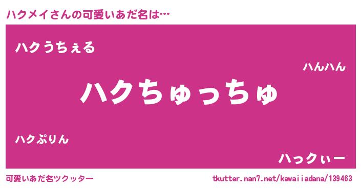 | ヒーロー風カッコイイあだ名 | 『正義の使者ハクメイ』『炎刃騎士ハク』 |