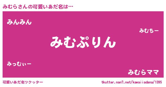 | 男性向けラノベタイトル風あだ名 | 『みむら~年齢イコール彼女いない歴の魔法使い~』 |
