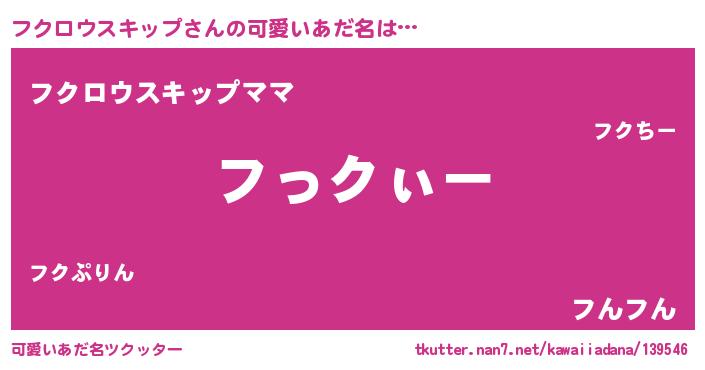 | 男性向けラノベタイトル風あだ名 | 『フクロウスキップの嫁は女の子じゃないと思った?』 |