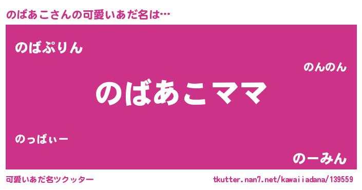 | ヘコむあだ名 | 『のばあこ(笑)』『のばもー』『豆乳』 |