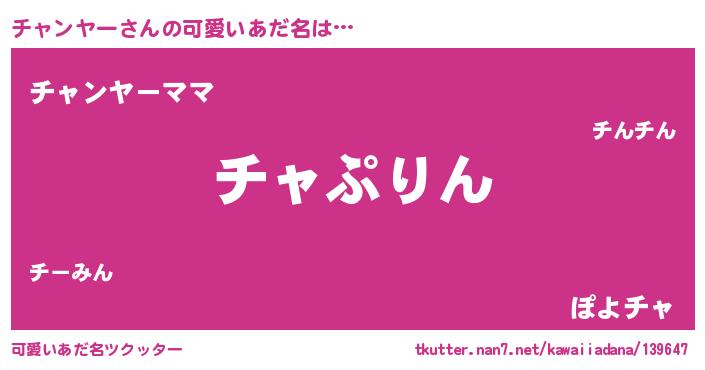 | ヘコむあだ名 | 『チャンヤー(震え声)』『チャっふぃ~』 |