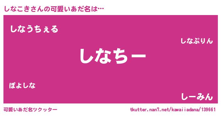 | 意味不明あだ名 | 『しなこきフォーエバー』『自称しなこき』 |