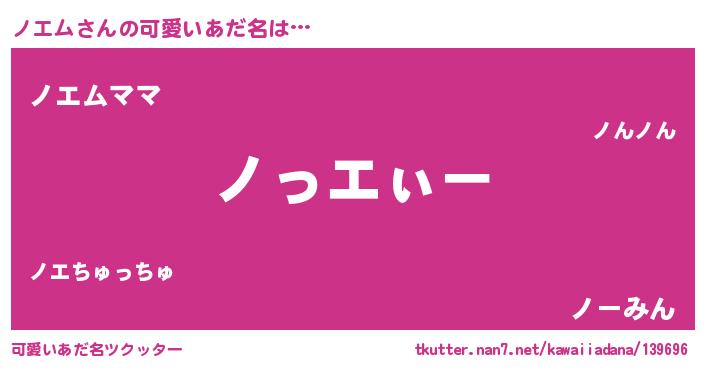 | 男性向けラノベタイトル風あだ名 | 『ノエムの嫁は女の子じゃないと思った?』 |