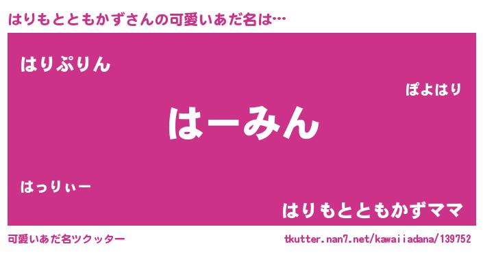 | ヘコむあだ名 | 『はりもとともかず(笑)』『はりぷりん』 |