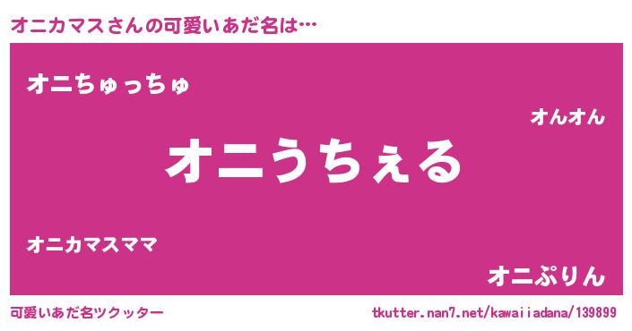 | 男性向けラノベタイトル風あだ名 | 『Re:オニカマスから始める異世界生活』 |