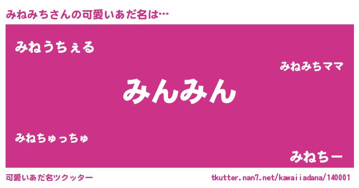 | 2回繰り返すあだ名 | 『みねみね』『むずむず』『みみねね』 |