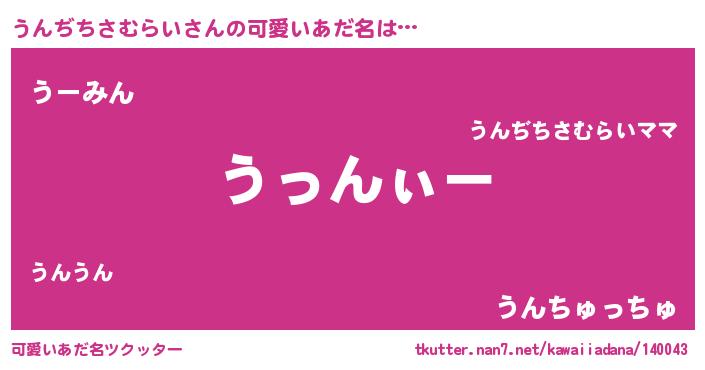 | 男性向けラノベタイトル風あだ名 | 『うんぢちさむらいの嫁は女の子じゃないと思った?』 |