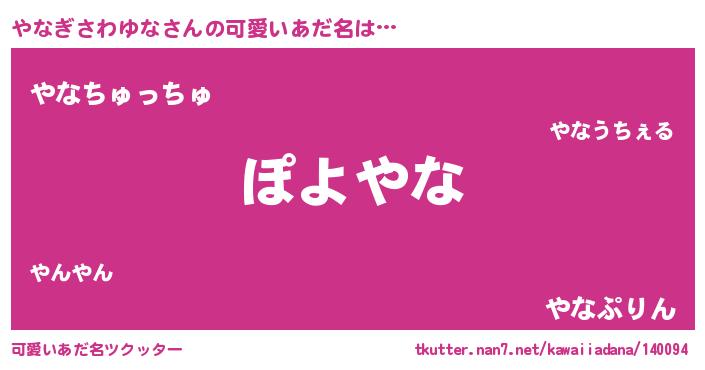 | ヘコむあだ名 | 『やなっふぃ~』『やなぎさわゆな(小並感)』 |