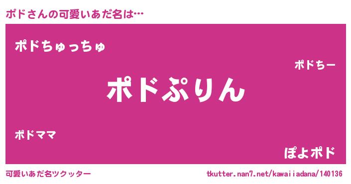 | 女子向けラノベタイトル風あだ名 | 『ポドの玉の輿計画!』『ポド恋絵巻』 |