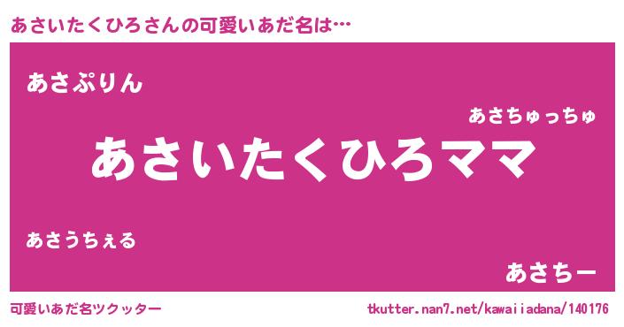 | 意味不明あだ名 | 『永久保存あさいたくひろ』 |