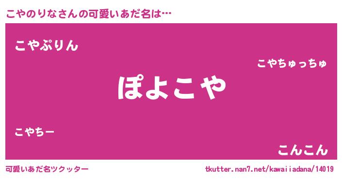 | 恥ずかしいあだ名 | 『プリティーこやのりな』『こやっちょ』 |