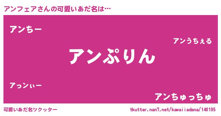 | ヘコむあだ名 | 『つくし』『アンぷりん』『アンもー』 |